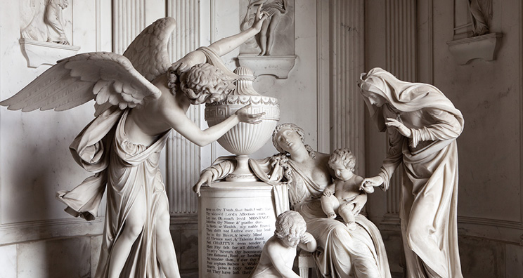 In the picturesque village of Warkton, you might not expect to come across a world-class monument in a parish church. Yet at St Edmund’s Church you will find four. Located near Boughton House in Kettering, Northamptonshire, you will find these four hidden gems within this beautiful church. Dedicated to four members of the Montagu family, the monuments are at once beautiful works of art and highly important pieces of Britain’s social and artistic history.